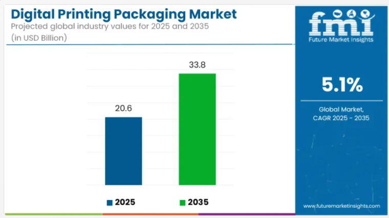 デジタル印刷式包装市場は、2025年の206億米ドルから2035年までに338億米ドルへ成長し、予測期間中の年平均成長率(CAGR)は5.1%と予測されております。2024年の売上高は196億米ドルに達しました。