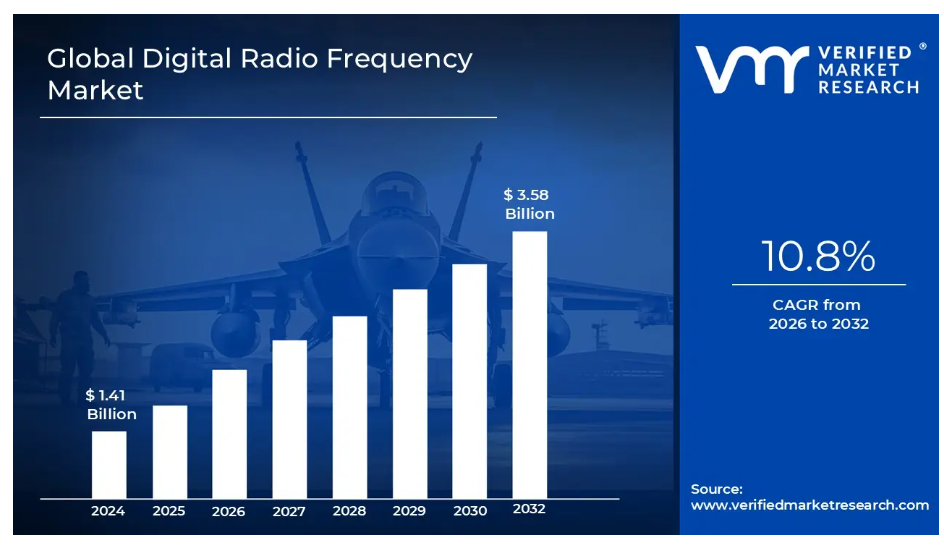 デジタル無線周波数市場の規模は、2024年に14億1,000万米ドルと評価され、2032年までに35億8,000万米ドルに達すると予測されています。