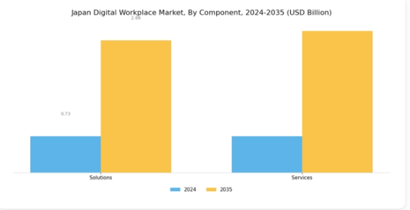 コンポーネント分野に焦点を当てた日本のデジタルワークプレイス市場は、効率性とコラボレーションの向上を通じて現代的な職場環境の進化を推進する重要な要素を包含している。この分野において、ソリューションとサービスという中核カテゴリーは、多様な組織的ニーズに対応することで市場全体に大きく貢献している。