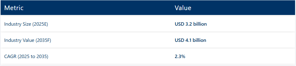 世界のダイレクト・トゥ・シェイプ(DTS)インクジェットプリンター市場は、2025年の32億米ドルから2035年までに41億米ドルへ、年平均成長率(CAGR)2.3%で着実に成長している。この成長は、飲料、パーソナルケア、食品業界における効率的で持続可能な包装への需要増加を反映している。