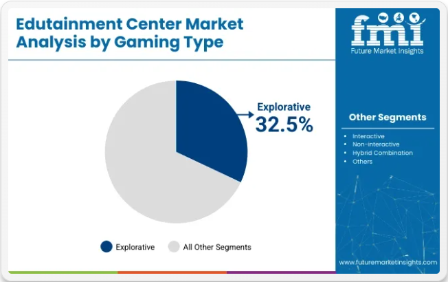 探求型ゲームは、2025年に32.5%のシェアでエデュテイメントセンター市場をリードすると予測される。これらのゲームは、多様な学習スタイルに訴求する実践的・双方向的な体験を重視し、現代の教育学的な潮流との整合性を高めています。探求型ゲームは、発見と実験を通じて子どもが学び、楽しみと認知発達を融合させる環境を創出します。