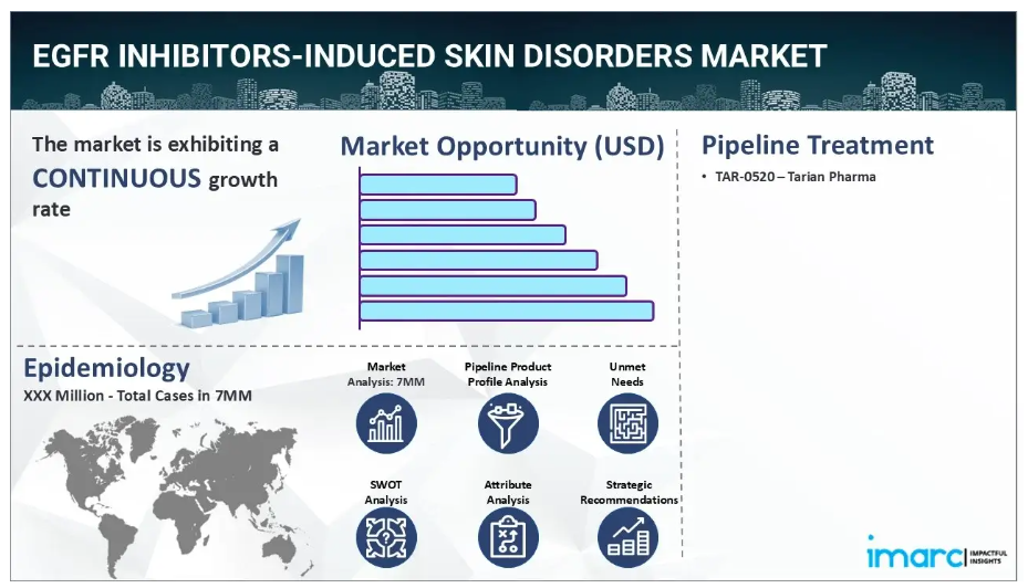 EGFR阻害剤による皮膚障害市場は、IMARCの新報告書「EGFR阻害剤による皮膚障害市場規模、疫学、市場内医薬品売上高、パイプライン治療法、および地域別展望 2025-2035」において包括的に分析されています。