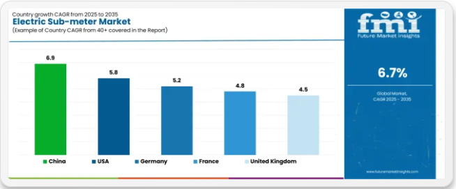 電気サブメーター市場は世界的に着実な成長過程を遂げており、中国は広範なスマートシティ計画、大規模な都市化プロジェクト、デジタル計測ソリューションの顕著な導入を背景に、2035年まで年平均成長率(CAGR)6.9%で首位を維持する見込み。米国は5.8%で続き、連邦脱炭素化目標、先進的な建築基準、エネルギー効率技術の普及拡大が後押ししている。ドイツは規制順守と先進的製造能力を背景に5.2%の成長過程を示している。英国は建築物効率基準とネットゼロ構想に注力し4.5%を記録。フランスは省エネルギー規制と建築物近代化プログラムにより4.8%の成長過程を遂げている。