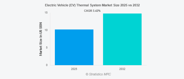 Stratistics MRCによると、世界の電気自動車(EV)サーマルシステム市場は、2025年に102億2000万ドルを占め、予測期間中の年平均成長率は5.42%で、2032年には147億9000万ドルに達する見込みです。電気自動車(EV)のサーマルシステムは、最高の快適性、安全性、性能を実現するために車内温度を制御する重要なコンポーネントです。電気モーター、バッテリー、パワーエレクトロニクス、キャビンなどの重要部品の温度を制御します。バッテリーの寿命、オーバーヒート、凍結はすべて、効率的な熱管理によって軽減されます。熱交換器、ポンプ、冷媒、センサーはシステムの一部の部品です。理想的な温度範囲を維持することで、EVのサーマルシステムは、さまざまな走行状況や気候条件のもとで、エネルギー効率、信頼性の高い運転、乗員の快適性を保証します。