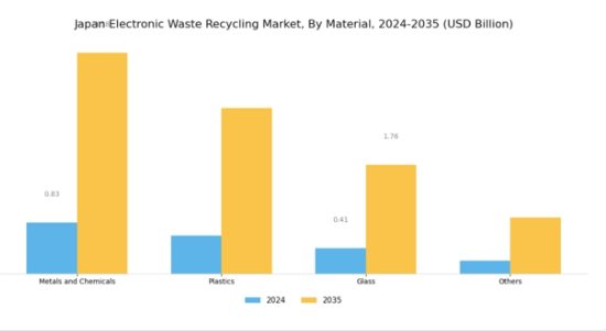 日本国民の環境問題への関心の高まりが、電子廃棄物リサイクル市場を推進している。電子廃棄物が環境に及ぼす有害な影響への認識が増すにつれ、消費者は古い電子機器をリサイクルする傾向が強まっている。報告によれば、日本人の約70%が電子廃棄物による汚染を懸念しており、これがリサイクル活動の急増につながっている。この高まる意識により、個人と企業の双方が環境に優しい廃棄方法を求めるようになり、リサイクルサービスの需要が押し上げられています。さらに、リサイクルの重要性について国民を啓発する政府のキャンペーンもこの傾向を後押ししています。その結果、より多くの個人が責任あるリサイクル活動に参加するにつれ、電子廃棄物リサイクル市場は持続的な成長を遂げる可能性が高いです。