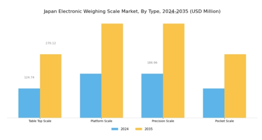 精密秤は、製薬や化学などの研究開発において不可欠な高精度を提供するため、実験室や科学分野での応用で際立っています。このような精密機器への需要の高まりは、日本が技術と品質基準を強く重視していることを反映しています。