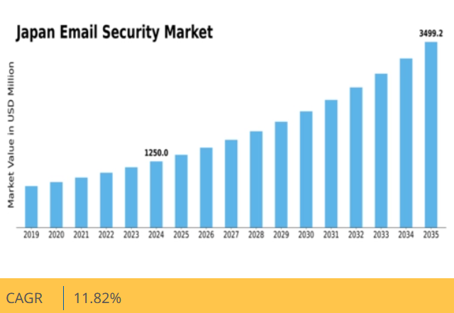 日本のメールセキュリティ市場は、サイバー脅威の増加、規制コンプライアンス、デジタルトランスフォーメーションを原動力として、2025年から2035年にかけて年平均成長率(CAGR)11.82%で成長すると予測されている。