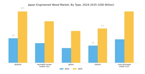日本のエンジニアードウッド市場では、環境に優しい素材への需要が顕著に増加しています。この傾向は、環境問題への意識の高まりと持続可能な建築手法への移行によって推進されています。消費者や建設業者がグリーンビルディング認証を優先する中、エンジニアードウッド市場は恩恵を受ける可能性が高いです。2025年には、エンジニアードウッド市場は約20億ドル規模に達し、年間約8%の成長率が見込まれています。この需要は、日本の炭素排出量削減への取り組みと合致する、持続可能な林業と再生可能資源の利用を促進する政府施策によってさらに後押しされています。その結果、環境意識の高い消費者の進化する嗜好に応えるエンジニアードウッド市場は、成長を続ける見通しです。