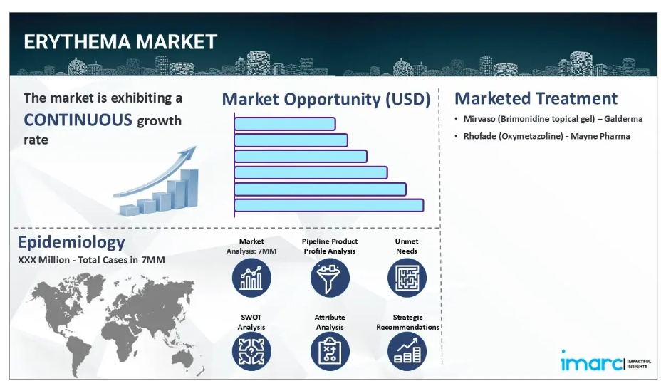 IMARC Groupの新報告書は、米国、EU4(ドイツ、スペイン、イタリア、フランス)、英国、日本における紅斑市場の包括的な分析を提供します。これには、治療実践、市場流通中および開発中の薬剤、個別療法のシェア、7大市場における市場動向、主要企業とその薬剤の市場実績などが含まれます。本報告書はまた、7大市場における現在および将来の患者層についても提示しています。本報告書によれば、米国は紅斑の患者数が最も多く、治療市場としても最大規模を占めています。さらに、現在の治療実践/アルゴリズム、市場推進要因、課題、機会、償還状況、未充足医療ニーズなども本報告書で提供されています。本報告書は、メーカー、投資家、ビジネス戦略家、研究者、コンサルタント、および紅斑市場に関与している、あるいは何らかの形で参入を計画している全ての方にとって必読の資料です。