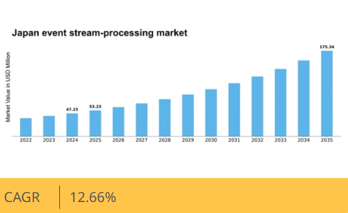日本のイベントストリーム処理市場は、リアルタイムデータ分析とIoT統合の需要増加を背景に、2024年から2035年にかけて年平均成長率(CAGR)12.66%で成長すると予測されています。