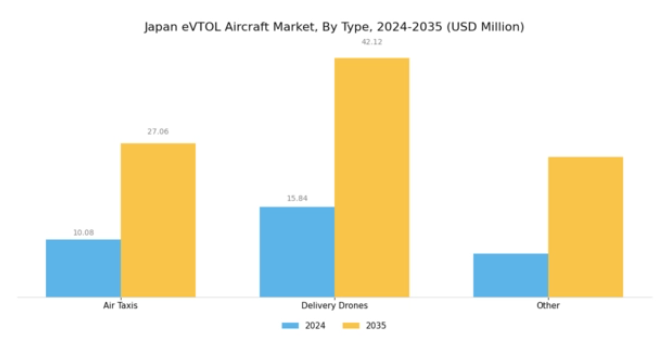 日本のeVTOL航空機市場は、新興の都市モビリティニーズに対応する多様な機種が存在するダイナミックな領域である。市場は主に3つのカテゴリーで構成される:エアタクシー、配送ドローン、その他多数の革新的航空機。都市部で持続可能かつ効率的な輸送手段の代替案が求められる中、エアタクシーは垂直離着陸技術を活用して混雑した都市を移動する手段として注目を集めており、これは日本のモビリティソリューションにおけるイノベーション重視の姿勢と合致する。この垂直移動型輸送手段は、特に東京のような大都市圏における交通渋滞の課題解決に不可欠である。