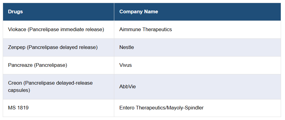 本レポートでは、現在市場流通中の外分泌膵機能不全治療薬および後期開発段階のパイプライン薬剤についても詳細な分析を提供します。