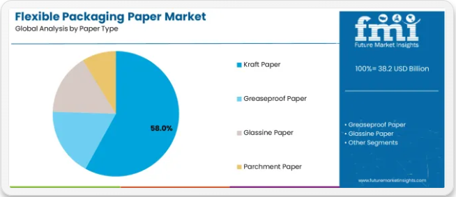 紙種別ではクラフト紙セグメントが58%の市場シェアを占める