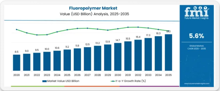 世界のフッ素樹脂市場は2035年までに193億米ドルに達すると予測されており、予測期間中に81億米ドルの絶対増加を記録する見込みです。2025年の市場規模は112億米ドルと評価され、評価期間中に年平均成長率(CAGR)5.6%で上昇すると見込まれています。世界的な高性能ポリマーソリューションへの需要増加、効率的な耐薬品性・耐熱性材料への需要拡大、半導体製造・電気自動車生産・先進医療用途への世界的な投資増加を背景に、同期間中の市場規模は約1.7倍に成長すると見込まれる。ただし、PFAS物質に関する環境規制や特殊グレードの高生産コストが市場拡大の課題となる可能性がある。最終更新日: 2025年10月9日フッ素樹脂市場のクイック統計フッ素樹脂市場規模(2025年見込み): 112億米ドルフッ素樹脂市場予測規模(2035年見込み): 193億米ドルフッ素樹脂市場予測CAGR: 5.6%フッ素樹脂市場における主要製品種類別:PTFEフッ素樹脂市場の主要成長過程地域:アジア太平洋、ヨーロッパ、北米フッ素樹脂市場の主要企業:ダイキン工業、ザ・ケモアーズ・カンパニー、シエンスコ、アルケマ、AGC、東岳集団、グジャラート・フルオロケミカルズ、クレハ、ハロポリマー、3M