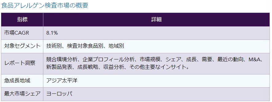 食品アレルゲン検査市場の概要