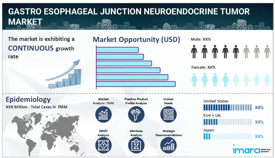 IMARC Groupの新報告書は、米国、EU4(ドイツ、スペイン、イタリア、フランス)、英国、日本における胃食道接合部神経内分泌腫瘍市場について包括的な分析を提供します。これには、治療実践、市場流通中および開発中の薬剤、個別療法のシェア、主要7市場における市場動向、主要企業とその薬剤の市場実績などが含まれます。本レポートでは、7大市場における現在および将来の患者数についても提示しております。