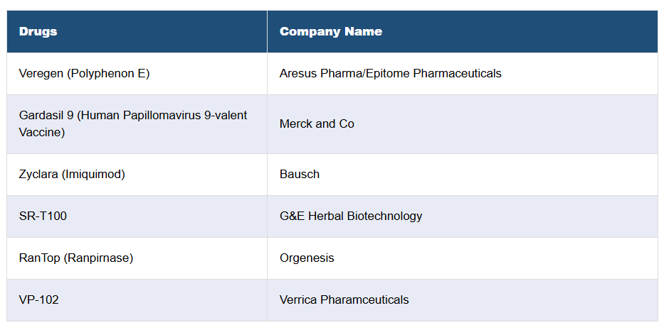 13. 性器疣贅 – 主要市販薬および開発中薬剤の属性分析