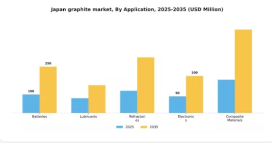 - 日本グラファイト市場規模推計と予測、用途別、2019-2035年(10億米ドル)