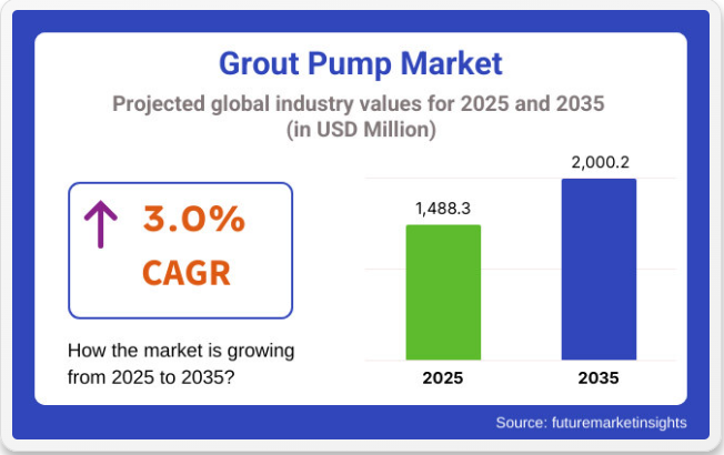 世界のグラウトポンプ市場は、2025年に14億8830万米ドルと評価され、2035年までに20億200万米ドルに達すると予測されており、予測期間中の年平均成長率(CAGR)は3.0%となる見込みです。成長過程は、空隙充填、構造健全性、地盤安定化においてグラウティングが重要なプロセスとなるトンネル掘削、鉱業、基礎補強プロジェクトへの継続的な投資によって牽引されると予想される。