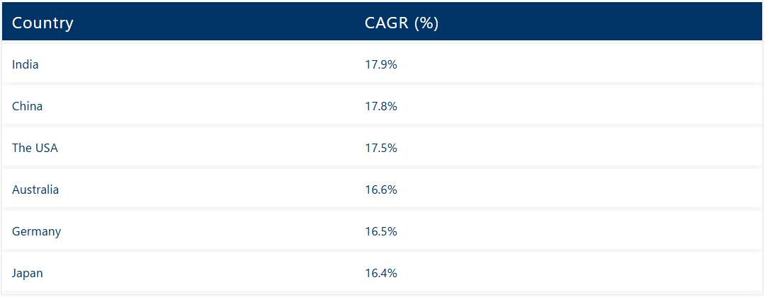 FMIの市場分析によれば、ドイツ市場は予測期間中に16.5%のCAGRで成長すると見込まれています。