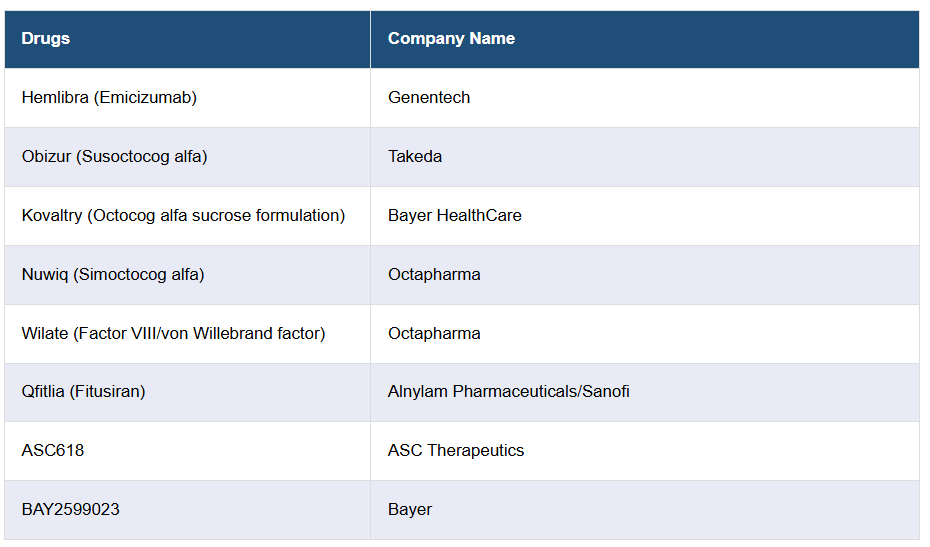 本レポートでは、現在販売中のA型血友病治療薬および後期開発段階のパイプライン薬剤についても詳細な分析を提供しております。