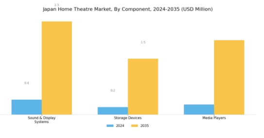 日本のホームシアター市場は、技術進歩と没入型オーディオビジュアル体験への消費者需要の高まりを背景に、コンポーネント分野で顕著な成長を示している。このセグメントは、サウンド・ディスプレイシステム、ストレージデバイス、メディアプレーヤーなど様々な重要要素で構成され、それぞれが市場全体の動向に大きく寄与している。特にサウンド・ディスプレイシステムは視聴体験を向上させ、ホームシアター環境における高品質な音響・映像性能を求める消費者のニーズに応える点で極めて重要である。