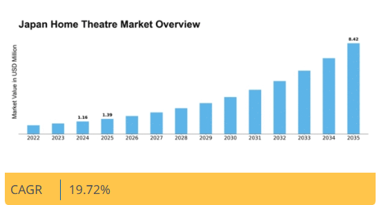 日本のホームシアター市場は、技術進歩と没入型体験への消費者需要の高まりを背景に、2025年から2035年にかけて19.72%のCAGRで成長すると予測される。