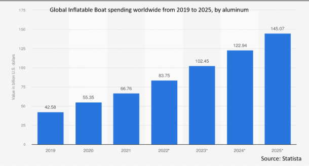 Stratistics MRCによると、世界のインフレータブルボート市場は2025年に21.9億ドルを占め、予測期間中の年平均成長率は5.9%で、2032年には32.7億ドルに達する見込みです。インフレータブルボートは、加圧されたガスを含む柔軟なチューブで構築された軽量でポータブルな水上バイクです。これらのボートは、PVCやハイパロンのような耐久性のある素材で作られていることが多く、保管や輸送に便利なように簡単に膨らませることができます。レクリエーションの活動、救助活動および軍の適用のために一般に使用されて、膨脹可能なボートは従来の堅いボートと比較される多様性、使い易さおよび手頃な価格を提供します。