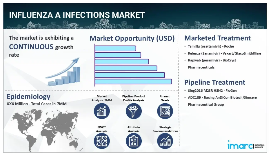 IMARC Groupの新報告書は、米国、EU5(ドイツ、スペイン、イタリア、フランス、英国)、および日本におけるA型インフルエンザ感染症市場について、包括的な分析を提供しています。これには、治療実践、市場流通中および開発中の薬剤、個別療法のシェア、7大市場における市場動向、主要企業とその薬剤の市場実績などが含まれます。本レポートではさらに、7大市場における現在および将来の患者層についても提示しています。