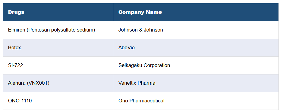 本レポートでは、現在市場流通中の間質性膀胱炎治療薬および後期開発段階のパイプライン薬剤についても詳細な分析を提供しております。