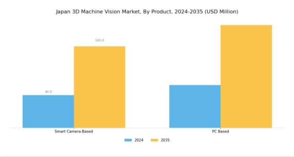日本の3Dマシンビジョン市場は、製品セグメントにおける顕著な取り組みと進歩が特徴であり、特にスマートカメラベースおよびPCベースの技術に焦点が当てられています。スマートカメラベース技術は、製造や包装を含む様々な産業における自動化と精度の向上に重要な役割を果たしており、業務効率の改善を目指す企業にとって好ましい選択肢となっています。