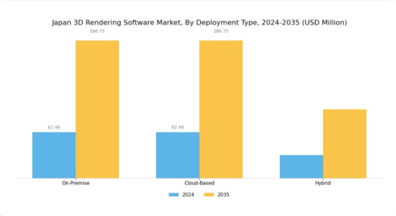 日本3Dレンダリングソフトウェア市場における導入形態セグメントは、市場構造の形成と多様なユーザー要件への対応において極めて重要な役割を担っています。主要3カテゴリーのうち、クラウドベースおよびハイブリッドオンプレミスモデルは、特に機密性が最優先される建築や製造などの分野において、高度なデータセキュリティと管理を必要とする企業に支持される傾向があります。一方、クラウドベースのソリューションは、その柔軟性、拡張性、および初期投資の低さから、インフラの負担なく機能的なアクセスを求める中小企業にとって特に魅力的であり、ますます注目を集めています。