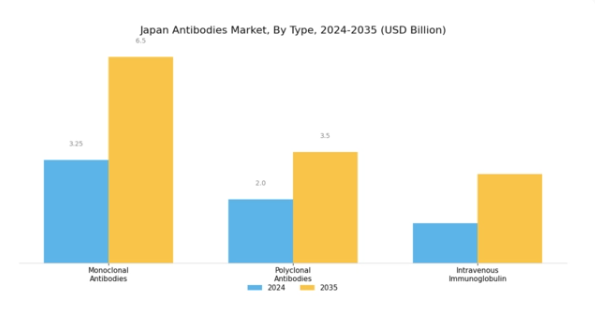 日本における慢性疾患の増加は、抗体市場にとって重要な推進要因です。がん、自己免疫疾患、感染症などの疾患が増加傾向にあり、高度な治療ソリューションが求められています。最近の健康統計によれば、日本の全死亡原因の約60%を慢性疾患が占めており、効果的な治療法の緊急性が浮き彫りとなっています。この傾向は、様々な慢性疾患の治療における有効性がますます認識されているモノクローナル抗体の需要を促進する可能性があります。医療提供者がこれらの差し迫った健康課題に対処するための革新的な治療法を求める中、抗体市場は大幅な成長が見込まれます。