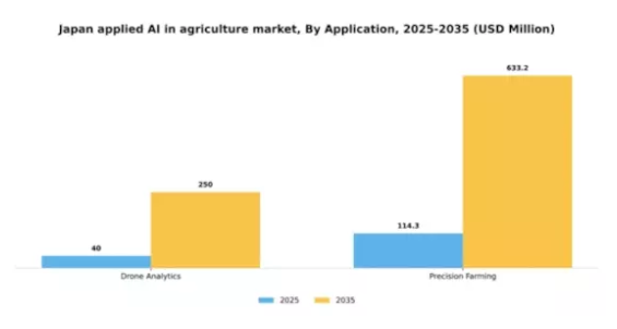 日本の農業向けAI応用市場において、ドローン分析は大きなシェアを占め、農業実践の効率化と革新を牽引する主導的な役割を果たしております。この分野は先進技術の強固な統合により恩恵を受け、農家が作物の健康状態を監視し、資源を効果的に管理することを可能にしております。一方、精密農業は急速に地歩を固めており、収量を向上させながら廃棄物を最小限に抑える最適化された農業運営と資源管理への需要の高まりに対応しております。成長傾向は両セグメントの導入拡大を示しており、特にドローン分析が提供するリアルタイムデータ収集と洞察による機能強化が顕著です。精密農業は技術進歩に後押しされ、持続可能な農業を支えるカスタマイズ型農業ソリューションに重点を置いています。労働力不足や効率化ニーズといった共通課題が両セグメントの発展をさらに促進し、地域の農業未来にとって不可欠な存在となっています。