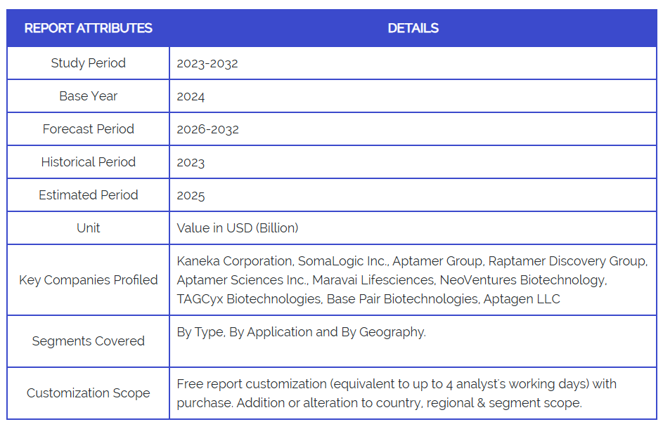 - 主要企業: カネカ株式会社、SomaLogic Inc.、Aptamer Group、Raptamer Discovery Group、Aptamer Sciences Inc.、Maravai Lifesciences、NeoVentures Biotechnology、TAGCyx Biotechnologies、Base Pair Biotechnologies、Aptagen LLC