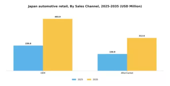 日本の自動車小売市場において、OEMセグメントはメーカーと販売店からなる強固なネットワークを特徴とし、車両や部品を直接消費者に提供しています。この流通経路は信頼性と信頼性が高く、高品質とブランド認知度を保証するものとして認識されています。OEMメーカーは強力なブランド価値を活用し、顧客ロイヤルティと市場シェアを維持しています。一方、アフターマーケットセグメントは、OEM部品の代替を求める消費者層に対応する競争力ある勢力として台頭しています。このセグメントは革新性と多様性を強みとし、付属品やアフターマーケット向け改良部品など幅広い製品を提供しています。消費者の嗜好がパーソナライゼーションと手頃な価格へと進化する中、アフターマーケットは堅調な成長が見込まれ、既存企業と新規参入企業の双方から注目を集めています。