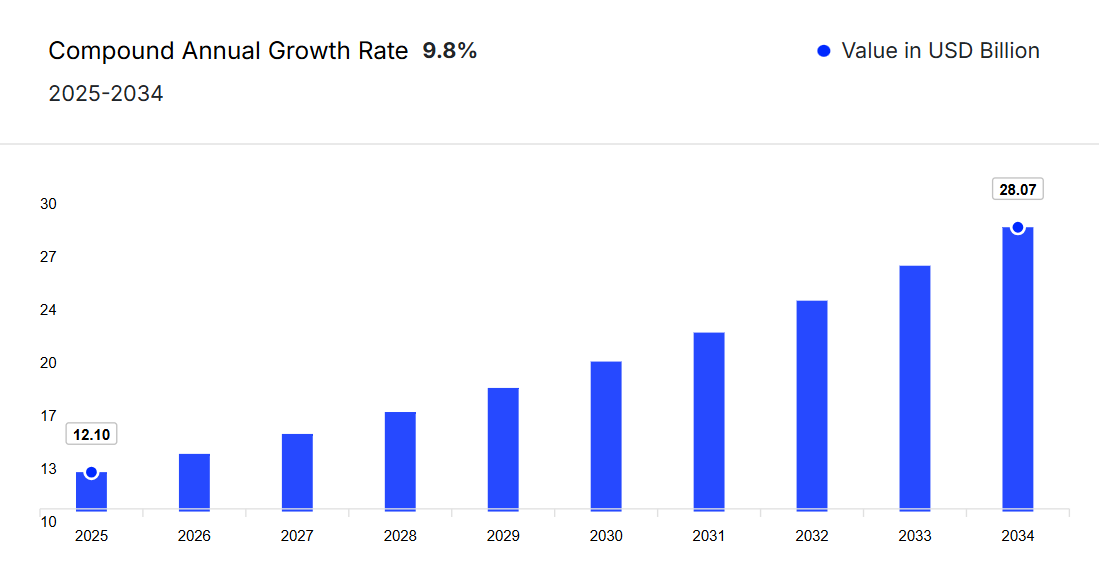 2025年から2034年にかけて、市場は年平均成長率(CAGR)9.80%で成長すると予測されています。