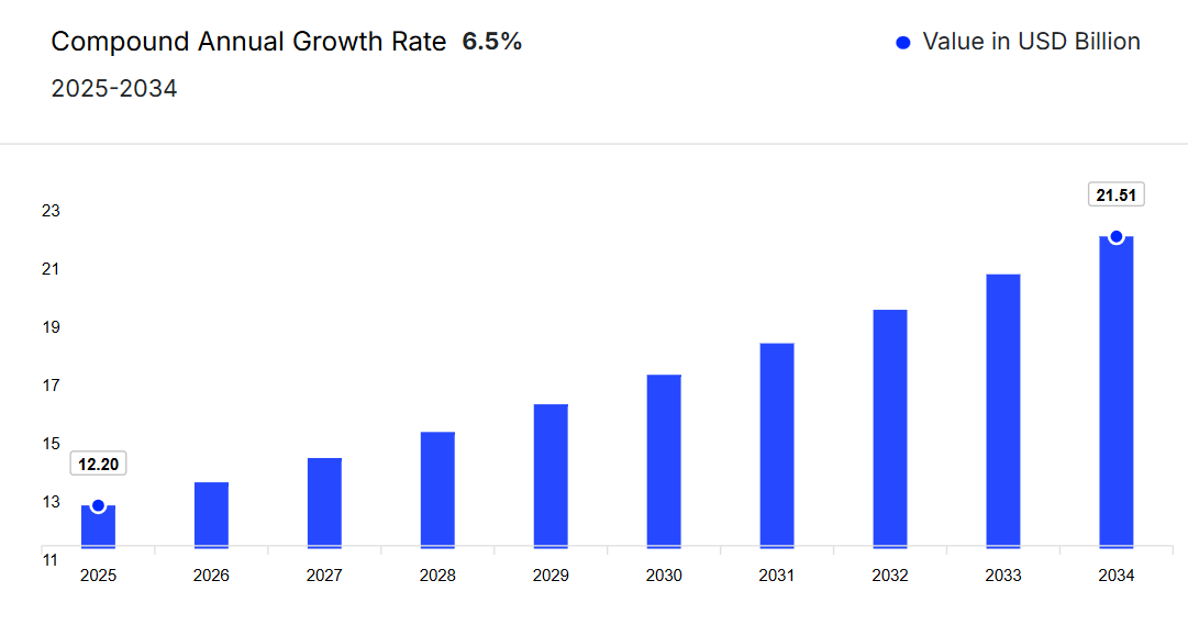 バイオテクノロジーの進歩、高齢化人口の増加、標的療法への需要拡大を背景に、市場は着実に拡大しております。日本は再生医療や遺伝子治療に対する政府の積極的な支援により、アジアのバイオ医薬品イノベーションエコシステムにおける主要プレイヤーとしての地位を確立しております。過去において、日本は世界のバイオ医薬品市場収益の約7%を占め、その強力な産業基盤を反映しておりました。研究開発への継続的な投資と最先端バイオロジクスの早期導入が、今後数年間の市場成長を促進すると予想されます。2025年から2034年の予測期間において、市場は年平均成長率(CAGR)6.50%で成長し、2034年までに215億1,000万米ドルの市場規模に達すると見込まれています。