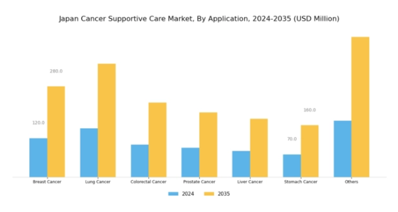 日本のがん支持療法市場、特に適応領域セグメントは、乳がん、肺がん、大腸がん、前立腺がん、肝臓がん、胃がん、その他など、様々な重要な治療領域を包含しています。乳がんは依然として日本で最も有病率が高く重要な健康問題の一つであり、患者の治療成果と全体的な生活の質を向上させるための、個別化された支持療法介入の緊急の必要性を浮き彫りにしています。
