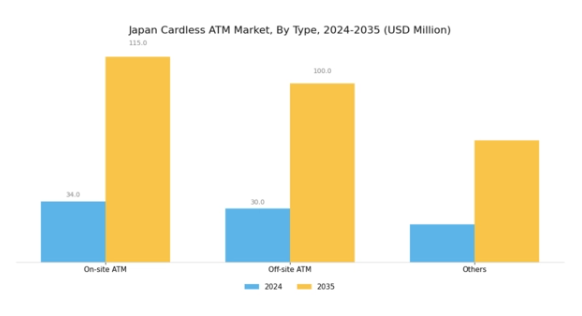 日本のカードレスATM市場は、地域内の消費者や企業の多様なニーズに応える様々な種類セグメントが特徴です。オンサイトATM種類は特に重要であり、事業施設内や小売店舗内で現金に容易にアクセスできる利便性を顧客に提供します。この位置付けは顧客満足度を高め、事業への集客を促進するため、シームレスなサービス提供を望む小売業者に人気の選択肢となっています。