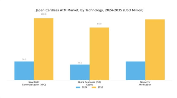 日本のカードレスATM市場、特に技術分野においては、消費者と銀行双方の進化するニーズに応える革新的ソリューションが特徴です。近距離無線通信(NFC)は利便性と効率性から普及が進み、ユーザーはモバイル端末をタップするだけでシームレスに現金を引き出せます。