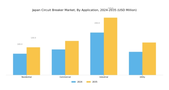 日本が先進的な製造と自動化に注力し続ける中、産業用途における堅牢な遮断器システムの需要は増加が見込まれ、技術革新と導入を促進します。ユーティリティ分野では、遮断器は電力系統の安定性と信頼性において極めて重要であり、特に日本が再生可能エネルギー源へ移行する状況下で、電力配分の効果的な管理を可能にします。この変革はエネルギー効率を高め、電気システムの持続可能性を促進し、二酸化炭素排出量削減と環境責任推進への日本の取り組みを反映しています。