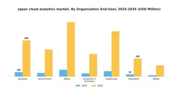 日本のクラウド分析市場において、組織エンドユーザーセグメント別の市場シェア分布を見ると、銀行産業が最大のシェアを占めています。これは、取引の安全確保や顧客体験の向上においてデータ分析への依存度が高いことが要因です。これに続いて政府セクターが急成長しており、市民サービスや業務効率の改善を目的としたクラウド分析ソリューションの導入が顕著に増加しています。ただし、現時点では市場全体の割合は比較的小さい状況です。成長傾向としては、銀行業界が引き続き主導的立場にある一方、政府部門が最も急成長しているセグメントとして急速に台頭しています。この成長は、デジタルトランスフォーメーションへの投資拡大と、よりスマートなガバナンスの推進によって支えられています。さらに、小売業や医療業界などのセクターも、業務の最適化や意思決定能力の向上を図るため、高度な分析技術を求める組織が増えていることから、有望な成長を示しています。