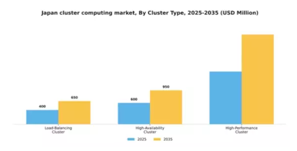 日本におけるネットワーク技術の進化は、クラスターコンピューティング市場を形成する上で極めて重要な役割を果たしています。5Gや強化された光ファイバーネットワークなどの革新技術は、クラスターコンピューティングシステムの効率的な運用に不可欠な高速データ伝送と接続性の向上を実現しています。組織が分散コンピューティングの力を活用しようとする中、高速ネットワークソリューションへの需要は増加する見込みです。この傾向は、通信や金融などリアルタイムのデータ処理・分析を必要とする産業において特に重要です。クラスターコンピューティング市場は、企業が高性能コンピューティング機能を支えるインフラに投資する中で、こうした進歩の恩恵を受けると予想されます。ネットワーク環境が急速に進化する中、クラスターコンピューティング市場の成長可能性は有望に見えます。