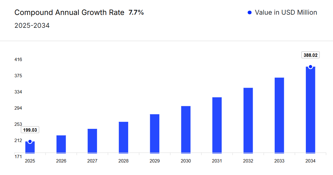 - 予測市場規模(2034年): 3億8,802万米ドル