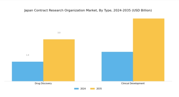 この分野は、日本の高齢化が進む中で新たな治療法への需要が高まっていることから、研究者や製薬企業が医薬品開発プロセスの効率化と迅速化を図るためにCROへの依存度を高めている点で、基本的に極めて重要です。この傾向は、同国の強固なバイオテクノロジー産業と、医薬品開発におけるイノベーションを促進するための政府施策によって支えられており、これらが業界の成長見通しに寄与しています。臨床開発は、種類別展望におけるもう一つの重要な要素であり、医療ソリューションの進歩において重要な役割を果たしています。