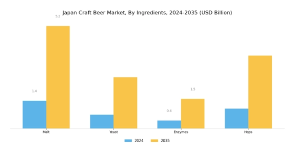 酵素は醸造プロセスの最適化を助け、生産効率とクラフトビールの品質向上につながります。一方、ホップはモルトの甘みを調和させる苦味と香りを提供します。プレミアムで地元産品を求める消費者の傾向に後押しされ、日本で職人技によるビールの人気が高まっていることから、これらの原料への注目度が高まっています。クラフトビール産業の拡大に伴い、多様で高品質な原料への需要はさらに高まると予想され、国内生産者がブランドアイデンティティを確立し、市場全体の成長に貢献する機会が生まれています。