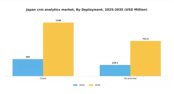 日本のCRM分析市場において、導入形態セグメントはクラウドソリューションとオンプレミスソリューションの競争環境が特徴です。クラウドは拡張性、使いやすさ、組織間でのリモートアクセスの需要増加に支えられ、最大のセグメントを維持しています。企業がデジタルトランスフォーメーション戦略を採用し続ける中、クラウドベース分析ソリューションへの需要は大幅に増加し、オンプレミス提供と比較して圧倒的な市場シェアを獲得しています。一方、オンプレミスセグメントは最も成長が著しい選択肢として台頭しており、CRM分析システムにおけるデータセキュリティと管理を優先する組織の関心を集めています。その成長要因には、厳格な規制要件や堅牢なデータガバナンスの必要性が挙げられます。企業がデータ管理の複雑さに対処する中で、オンプレミスソリューションはクラウド導入に代わる有力な選択肢として支持を集め、バランスの取れた市場動向を形成しています。