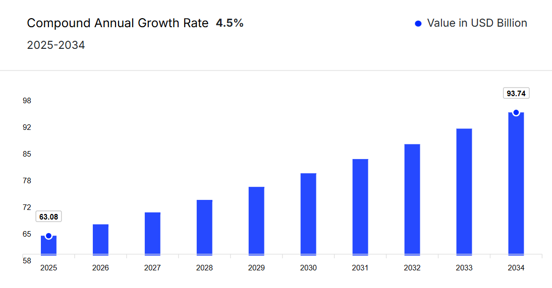 2025年から2034年にかけて、市場は年平均成長率(CAGR)4.50%で成長すると予測されています。