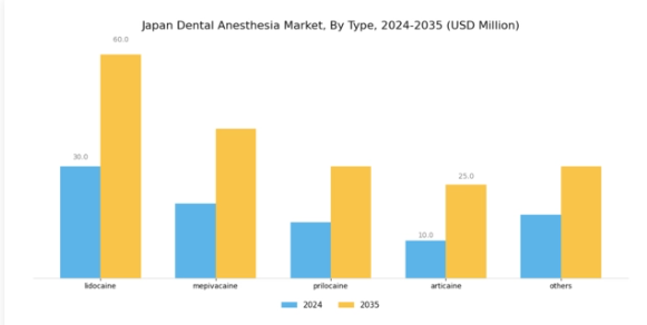 技術革新は日本の歯科麻酔市場を形成する上で重要な役割を果たしています。コンピューター制御の局所麻酔投与システムの導入は、麻酔の投与方法を革新し、精度を高めるとともに患者の不快感を軽減しました。これらの進歩は麻酔の効果を向上させるだけでなく、回復時間の短縮にも寄与しています。さらに、歯科診療におけるデジタル技術の統合は、麻酔プロセスを合理化し、効率化することが期待されます。歯科医療従事者がこれらの革新的なソリューションを採用するにつれ、患者体験と治療成果の向上の需要に牽引され、歯科麻酔市場は成長の兆しを見せています。